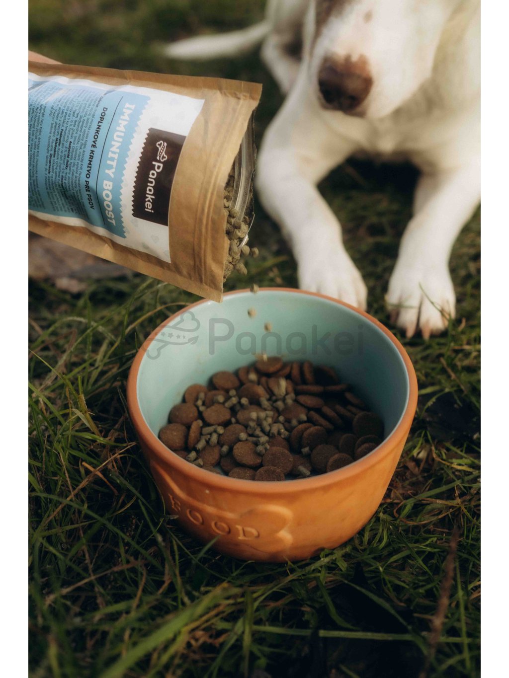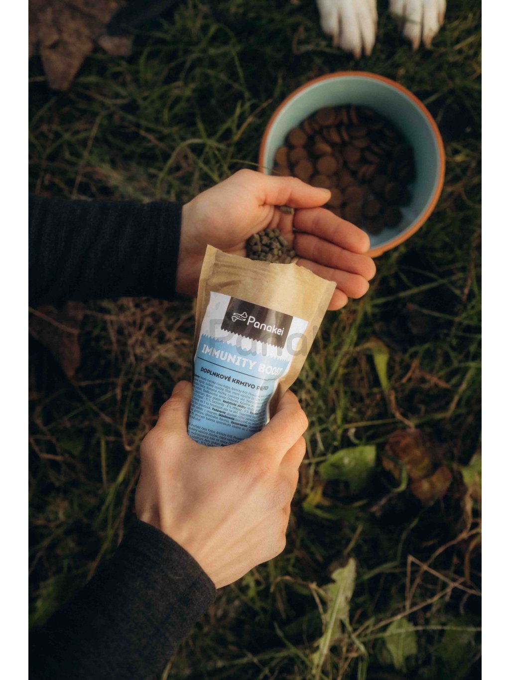 Složení: hnědá mořská řasa Kelp, arktický krill, pivovarské kvasnice, směs mořských řas, sušená vejce (sušený vaječný žloutek, mleté vaječné skořápky), sladkovodní sinice Spirulina, římský kmín, konopná moučka, lososový olej, hydrolyzovaný kolagen, hydrolyzovaný krillový protein, sladkovodní sinice Chlorella, vitamín C, žraločí chrupavka, colostrum, beta glukan.