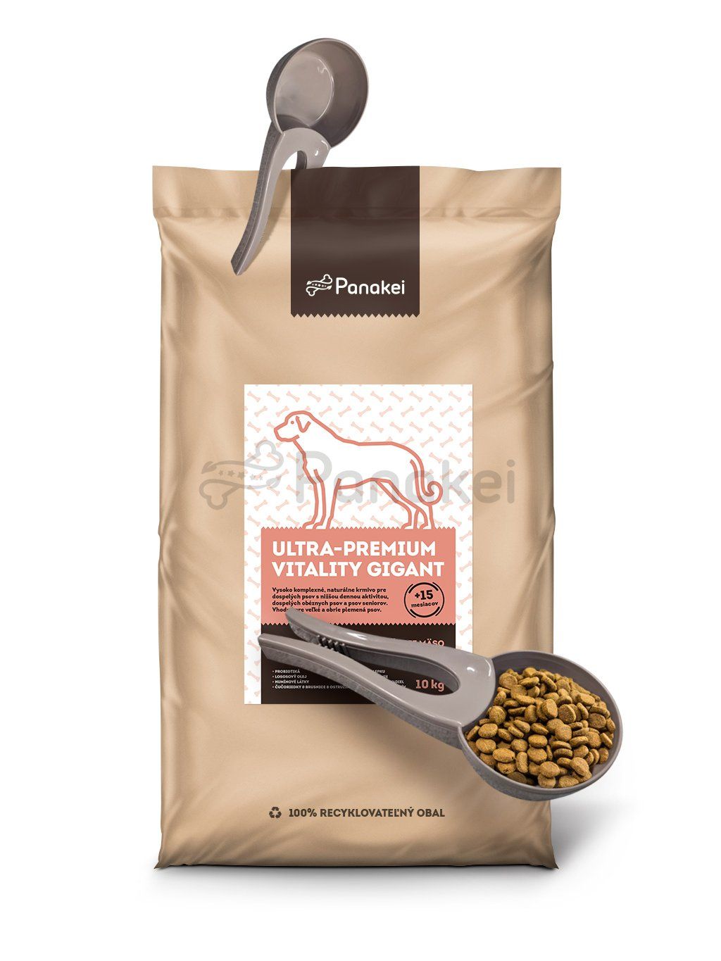 Odměrka je vyrobena z pevného, snadno omyvatelného materiálu a je ideální pro přesné dávkování krmiva pro psy Panakei.