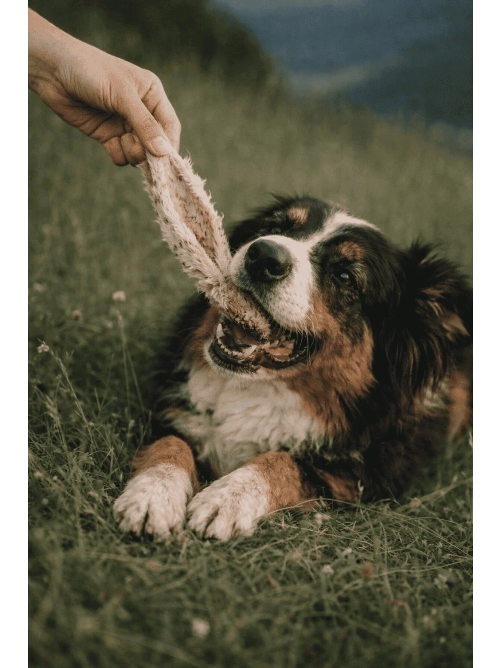 Přítomnost srsti činí tento pamlsek pro psy přirozeně atraktivním a zároveň poskytuje psovi autentický zážitek ze žvýkání. Srst navíc působí jako přirozený zdroj vlákniny, který může podporovat trávení. Žvýkání pomáhá uspokojovat přirozený žvýkací instinkt psa a zároveň může přispívat k mechanickému čištění zubů. Pamlsek má tenčí a přirozeně křupavou strukturu, která při žvýkání postupně měkne.